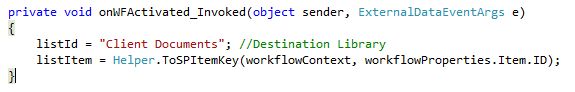 10. Select the onWorkflowActivated1 activity and press F4 to open the properties and change the name to onWFActivated.