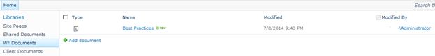 1. Create a Document Library in the SharePoint site as WF Documents and Client Documents.