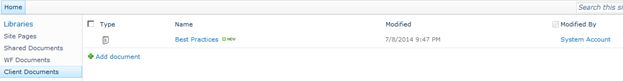 28. Click on the Client Documents library and see that the file is successfully uploaded to the library.