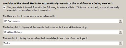 6. Click Next and associate the list to WF Documents that we created in Step 1.