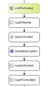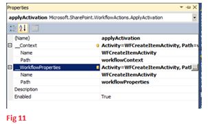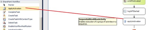 12. Drag and drop the Apply Activation control into the workflow designer after logWFStarted activity and do the procedure below (apply the activation activity that will initialize the workflow context object and then bind into the __Context property of ItemActivity).