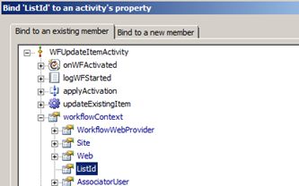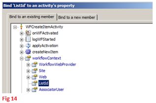 15. Then Bind the ListId property to the ListId property of workflowContext as shown below.