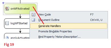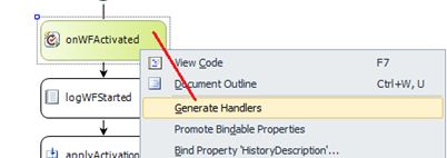 21. Right-click on the onWFActivated activity and select Generate Handlers as shown below.