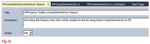 22. Change the feature name to WFCreateItemActivityFeature and provide the description as shown below.