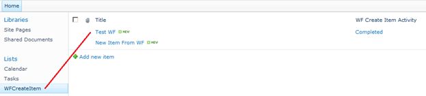25. Add a new item to the list and see that the new item has been created as shown below.