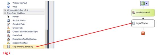 11. Drag and drop LogToHistoryListActivity to the designer and change the name as logWFStarted in the properties window.