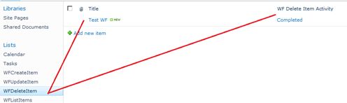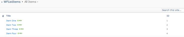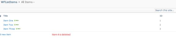 28. Click on the WFListItems list and see the item that has the ID 4 has been deleted from the list.