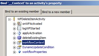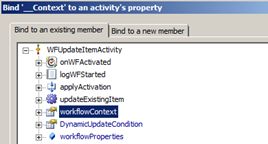 14. Bind the __Context property to an existing workflowContext property as shown below.