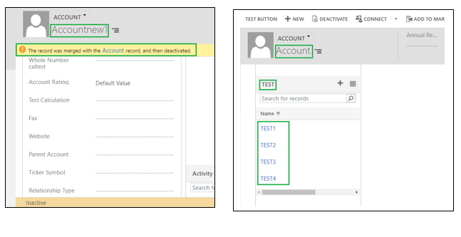 The Accountnew1 record will be deactivated as it is merged with Account record. And all of its child records are merged with the Account record as shown.